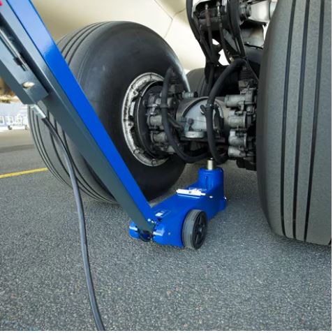 The jack can be operated by either compressed-air, nitrogen from the aircraft wheels or a mobile nitrogen service cart