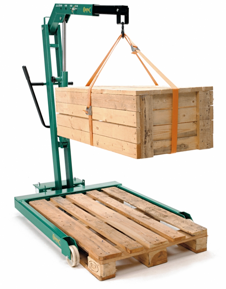 The industrial workshop crane fits around a standard EUR pallet.