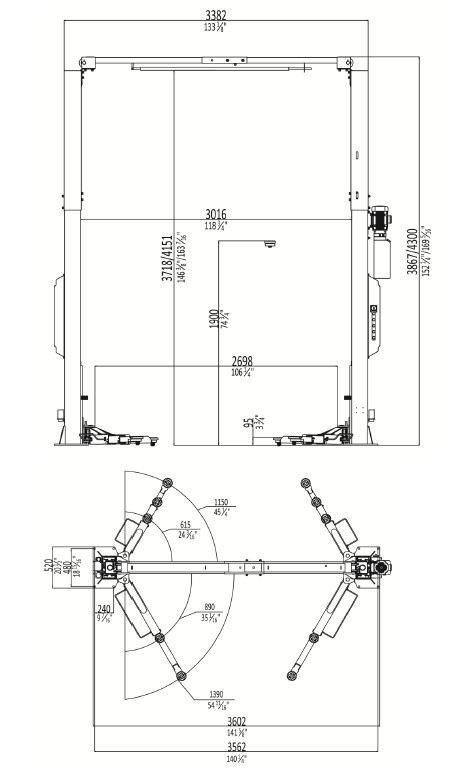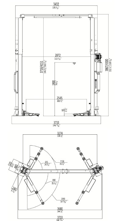 Two post hydraulic lift with electrical release 4200kg HCT2.1AL42E