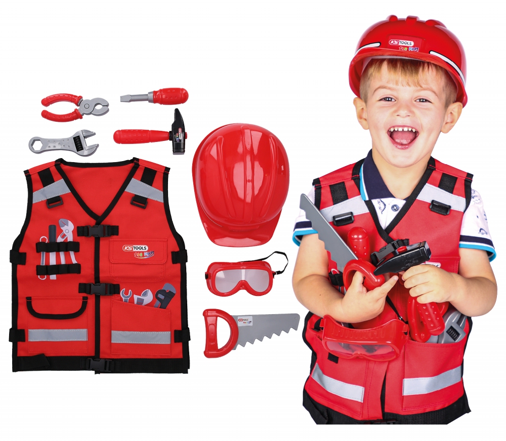 - Universal size: Helmet, safety glasses, and vest with pockets for tools can be adjusted in size.