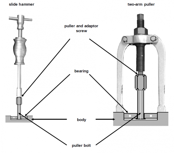 - puller bolt and adaptors for use with slide hammer and two-arm pullers