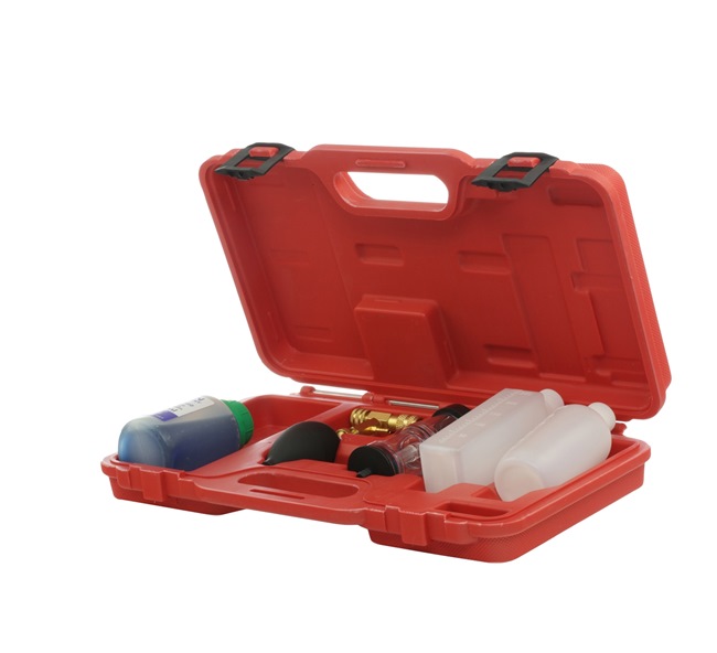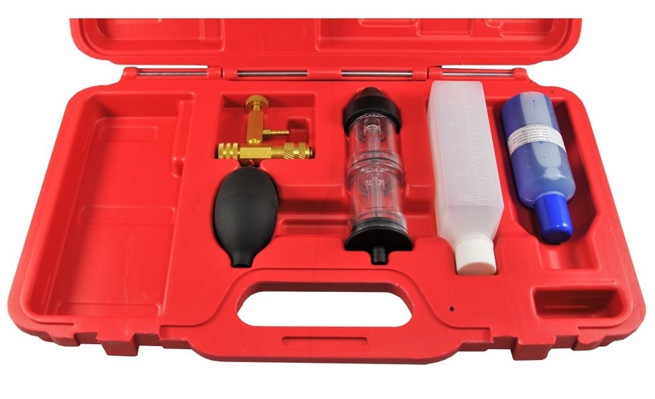 The cylinder head gasket tester detects the presence of CO2 in antifreeze vapors.