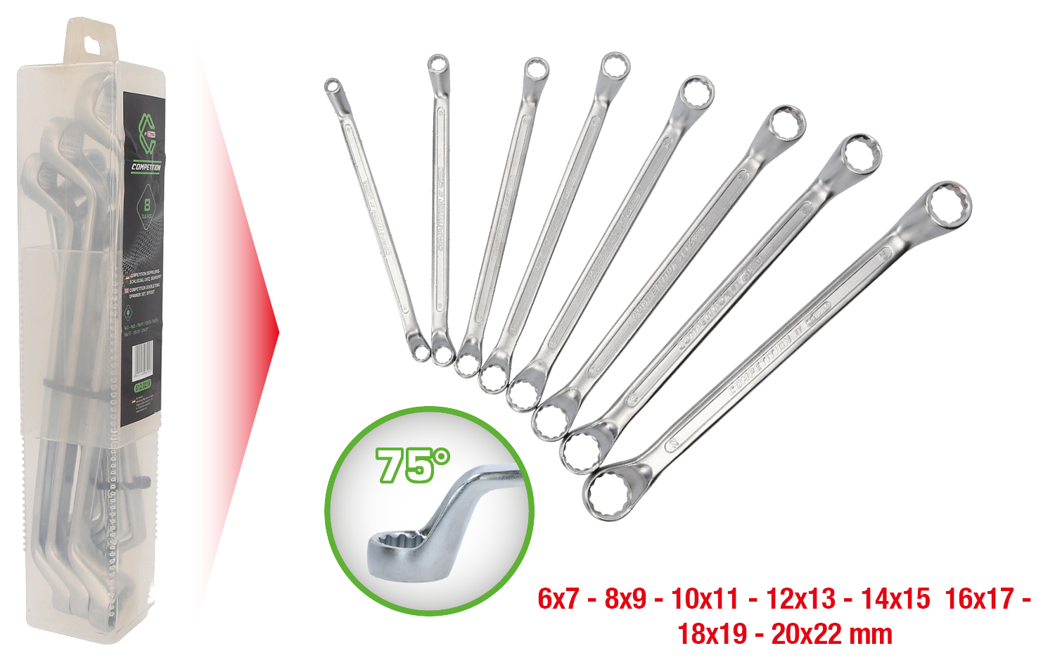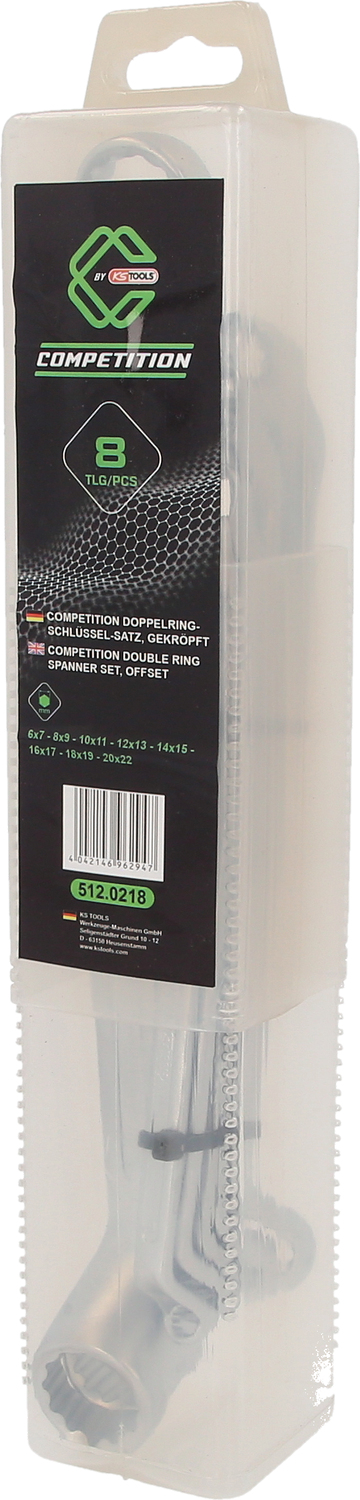 COMPETITION Double ring spanner set, offset, 8 pcs