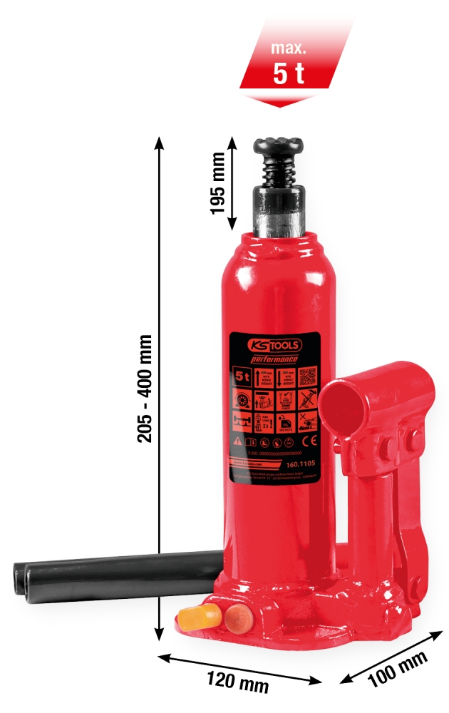 didelio našumo hidraulinis transporto priemonių keltuvas su balionu, 5000 kg, kėlimo aukštis: 207–402 mm