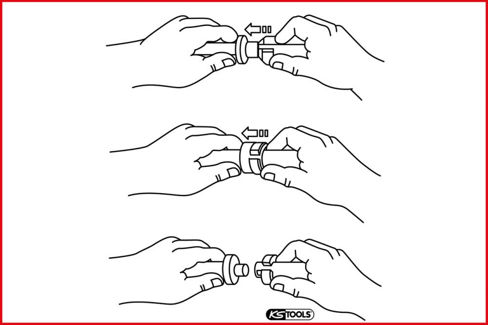 Linijų sujungimo elementų atlaisvinimo komplektas, skirtas linijų movoms su fiksuojamais spyruokliniais uždoriais, 7 dalių