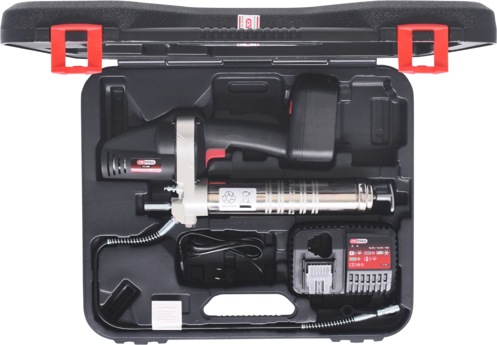 400 ml akumuliatorinis tepalo presas, 420bar, 18V, su 1 akumuliatoriumi ir 1 įkrovikliu