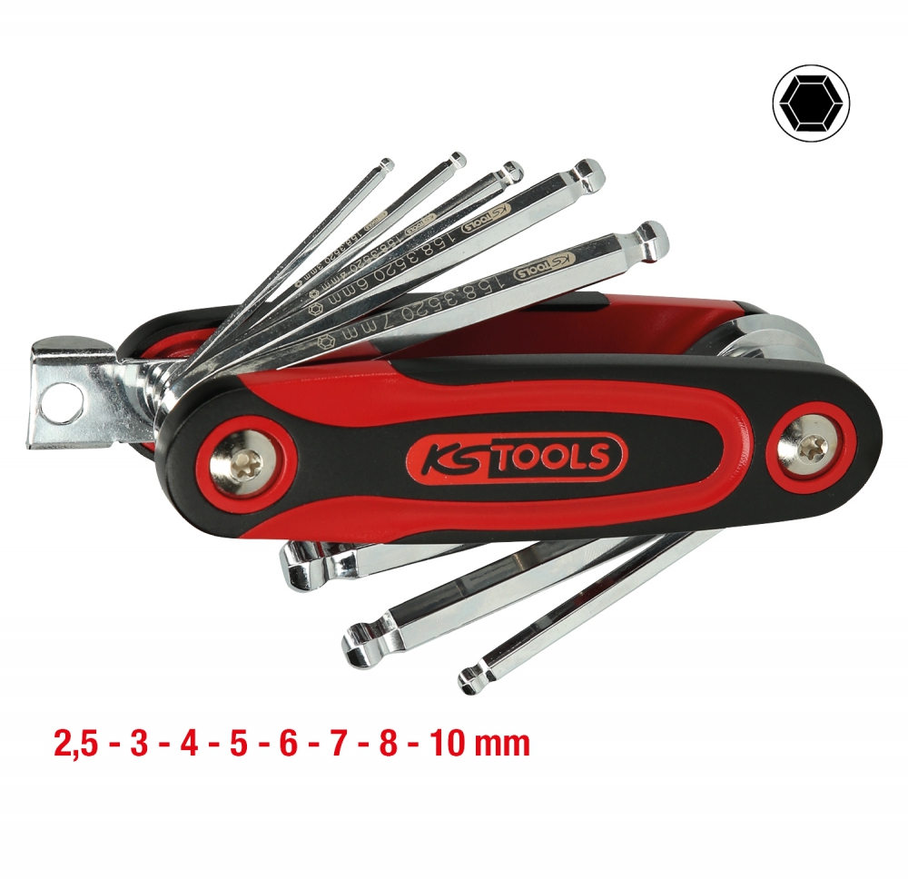 atlenkiamas lenktų kaištinių šešiakampių raktų su rutuline galvute laikiklis, 8 dalių