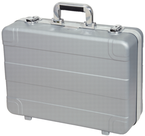 - stabilus kietas lagaminas iš smūgiams atsparaus plastiko su aliuminio rėmu