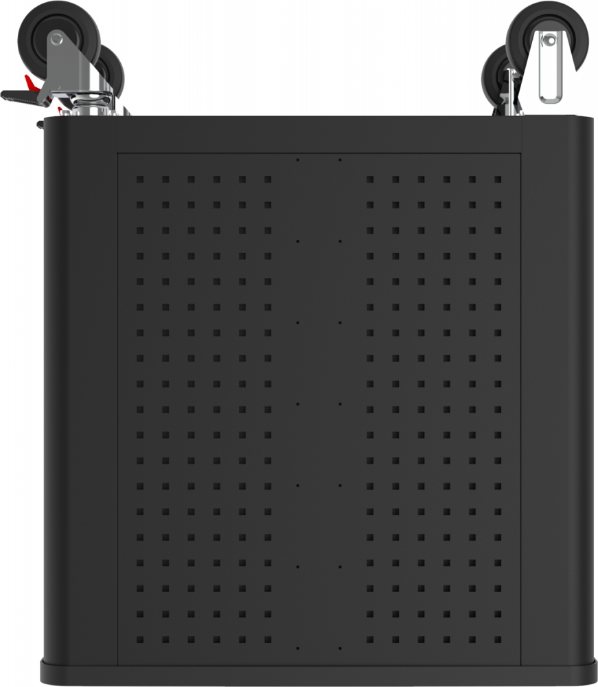 - Šoninės sienelės su keturkampėmis angomis, kad būtų galima pritaisyti įvairius priedus
