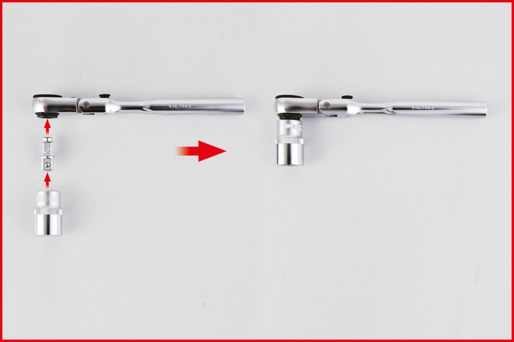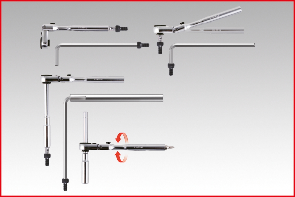 - preciziškas ir tvarkingas populiariausių 1/4" antgalių išdėstymas ir galinės galvutės