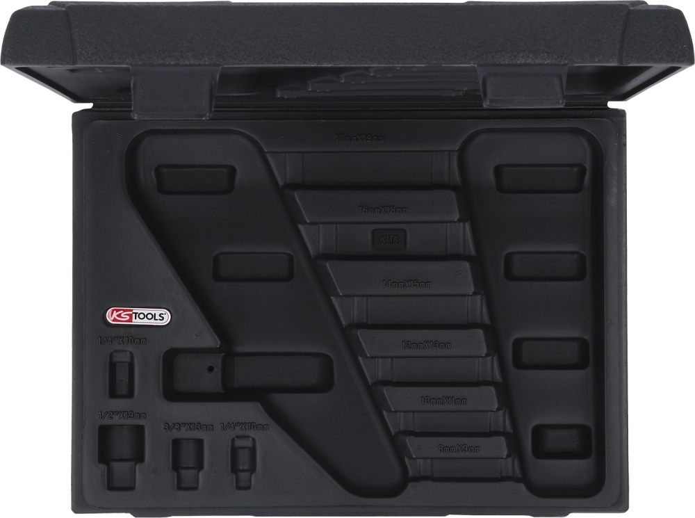 GEARplus dvipusių žiedinių veržliarakčių su terkšle komplektas, 10 dalių, 8–19 mm