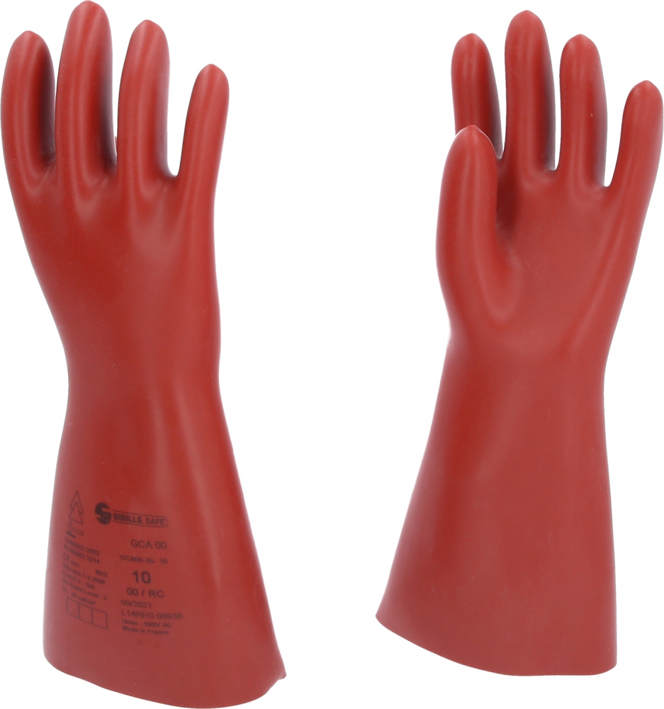 Apsauginės pirštinės elektrikui su mechanine apsauga ir šilumos izoliacija, 10 dydis, 00 klasė, raudonos