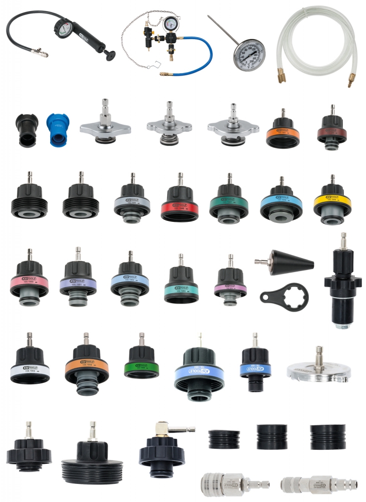 - puikus derinys aušinimo sistemos ir uždarymo dangtelių slėgiui patikrinti