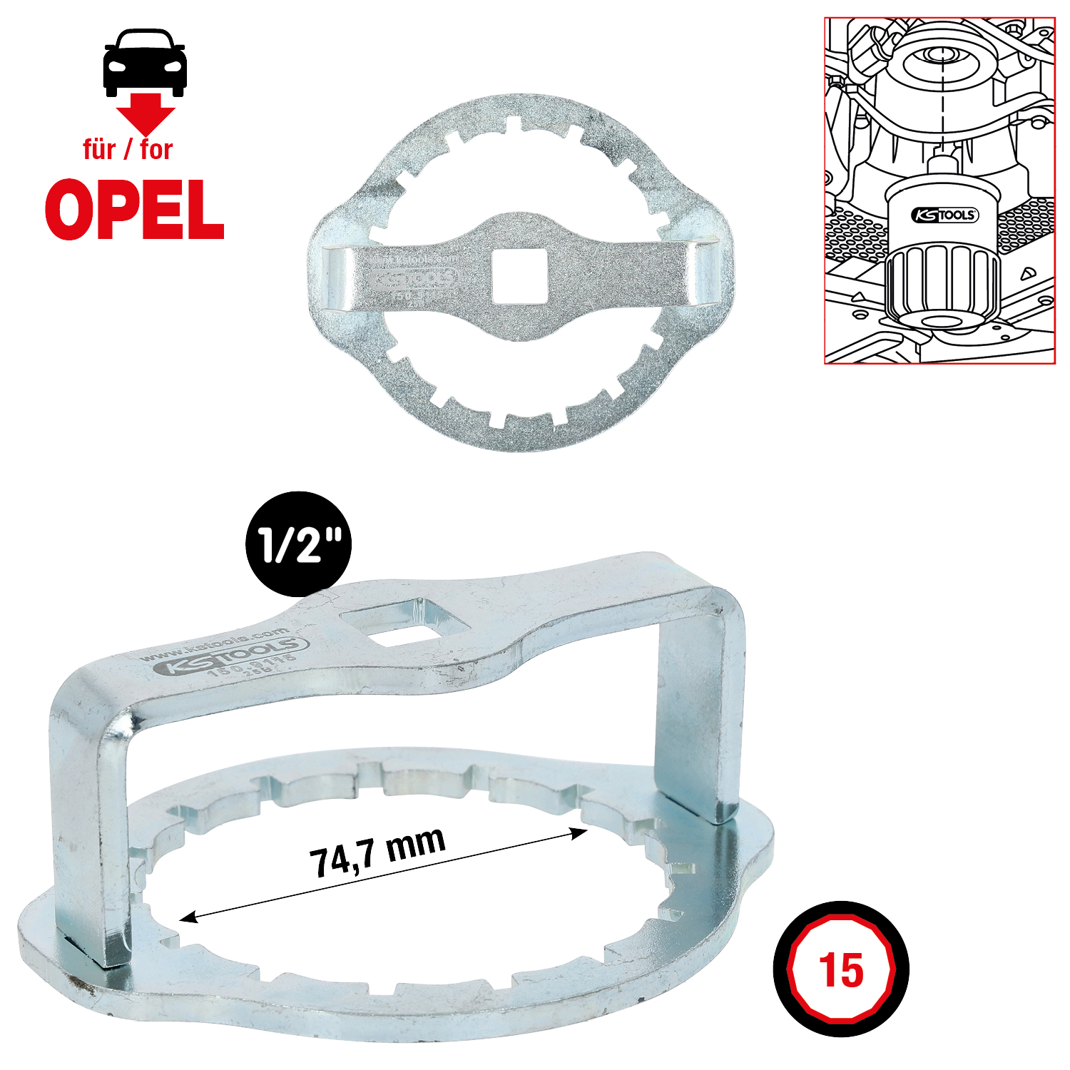 1/2" alyvos filtro raktas, Ø 74 mm / 15 įrantų, skirtas Opel
