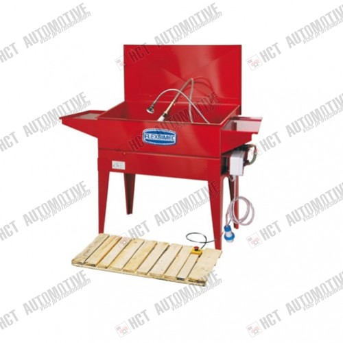Stacionarinio išplitimo plovimo įrenginys iš dažyto plieno, sudarytas iš talpyklos su 4 kojomis, su uždariu ir nuimamu dangčiu, spraigūnais su dušo galvute ir srautinio valymo šepetėliais, užtikrinantis nuolatinį skysčio tekėjimą ir efektyvesnį detalių plovimą. Sistema užtikrina nuolatinę skysčio cirkuliaciją su 0,5 bar slėgiu dėl elektrinio panardinamo siurblio. Siurblio įjungimas ir išjungimas atliekamas su pedalo jungtuku.