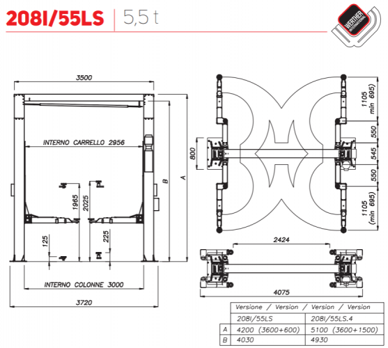 | Maksimalus aukštis | 4200 (mod.208I/55LS) / 5100 (mod.208I/55LS.4) mm |
