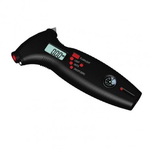 Viskas viename! Skaitmeninis padangų oro slėgio matuoklis, protektoriaus gylio matuoklis, kampinis, kompasas, peilis. LED lemputė