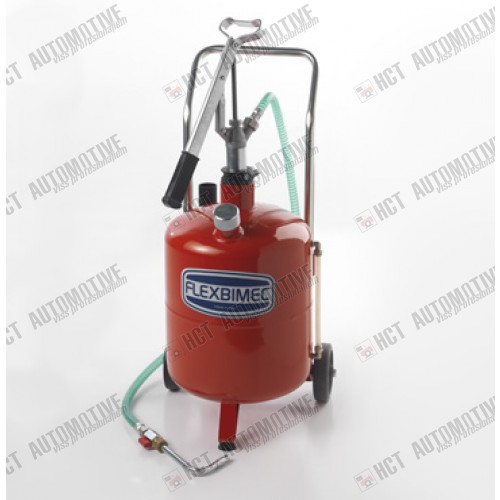 Mobile oil dispensing unit, suitable for the use with gear oils, consisting of lever action oil pump, metal 24 l – container with 2 wheels and level indicator, 1.5 m – hose with curved, rigid gear oil outlet pipe and anti-drip shut-off valve, particularly suitable for ATF – filling.