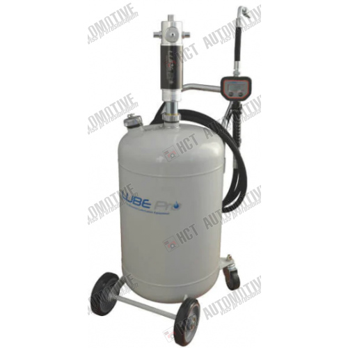 Eļļas izdales iekārta, aprīkota ar pneimatisko eļļas sūkni un digitālo skaitītāju-pistoli