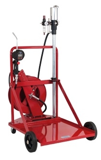 Mobile pneumatic oil dispensing kit, for 208 l drums, with hose reel and standard trolley, consisting of: