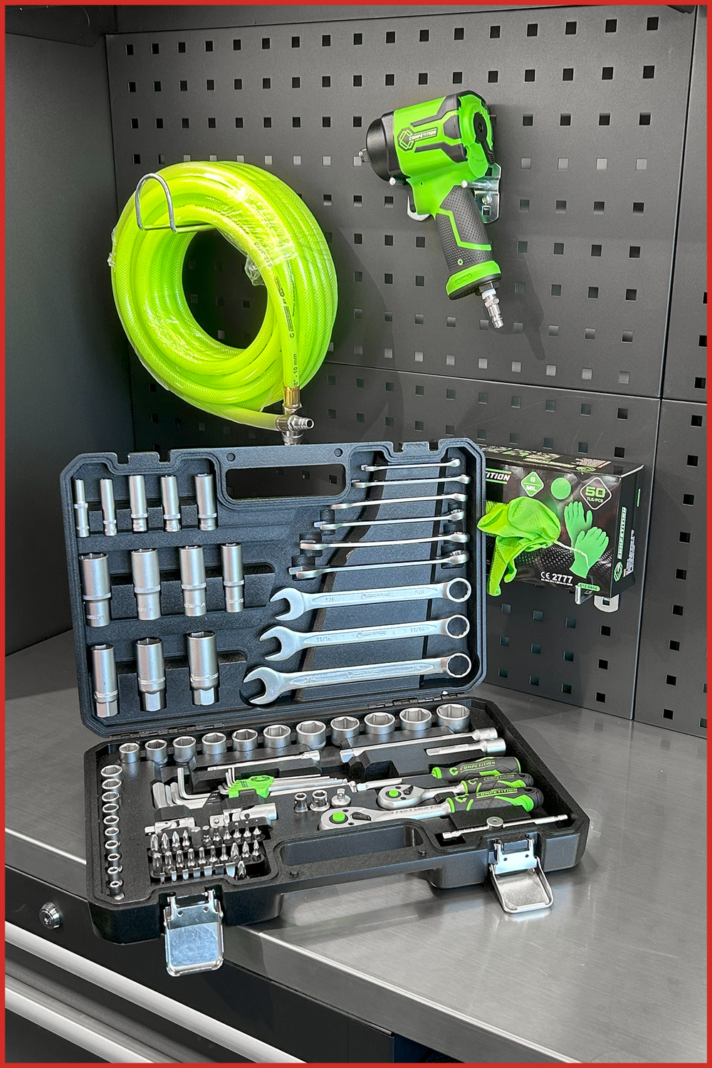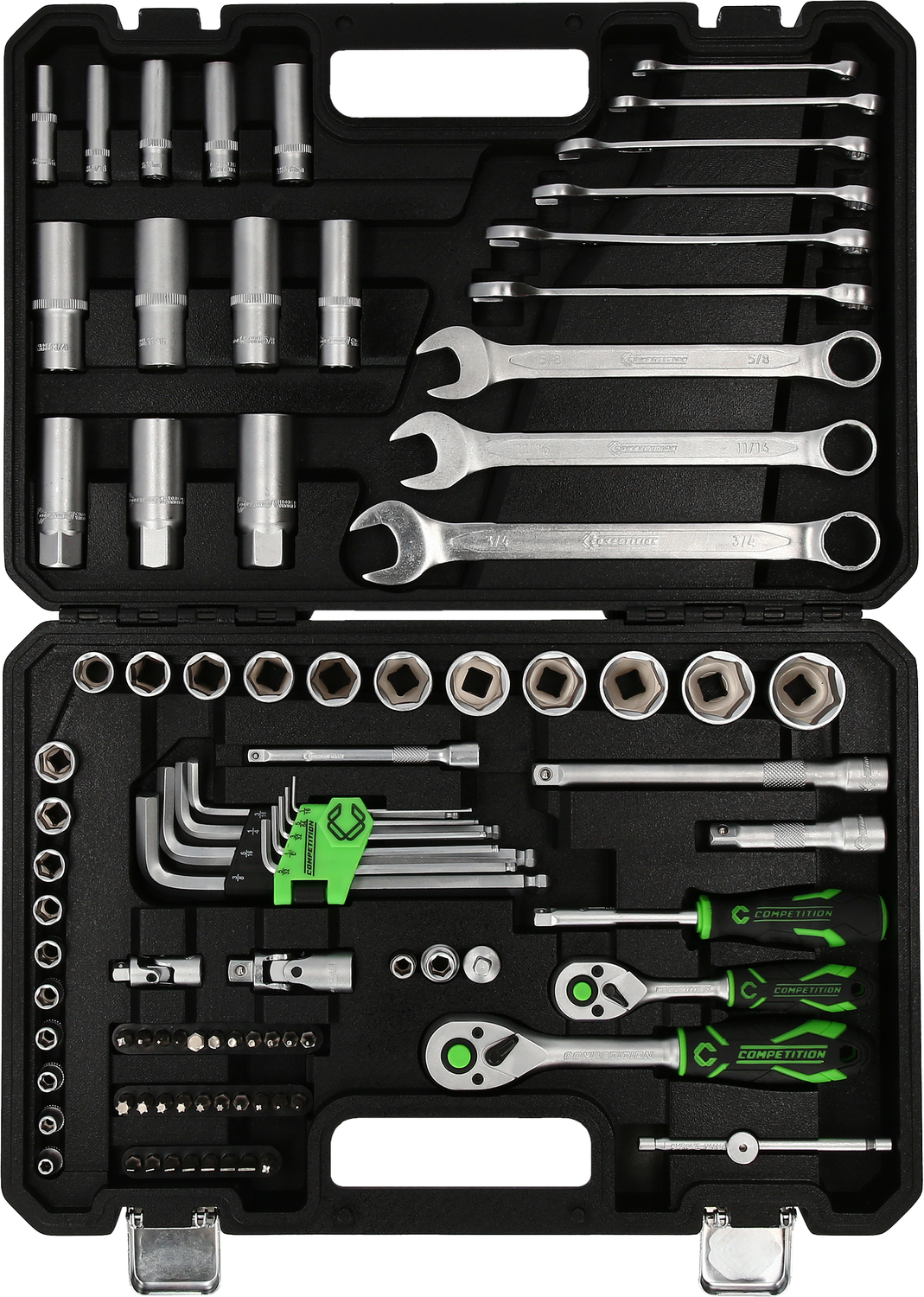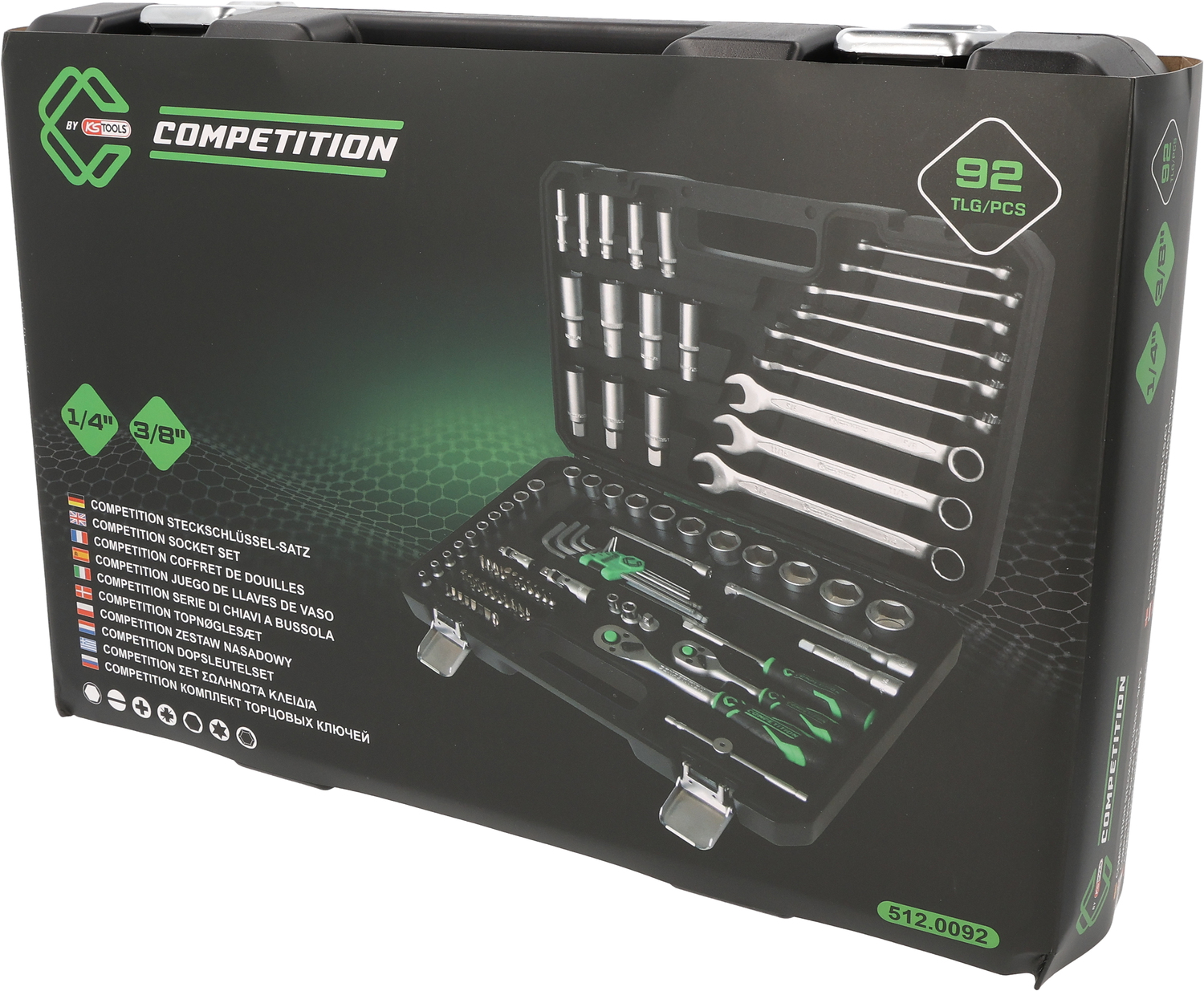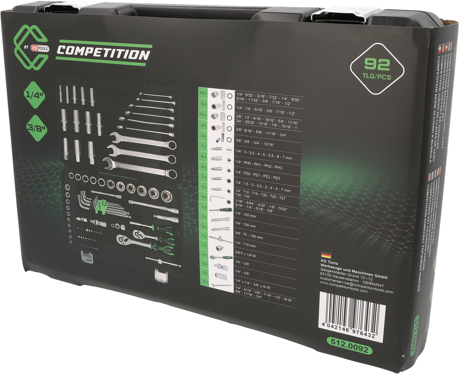 COMPETITION 1/4" + 3/8" galinių raktų komplektas, 91 dalių