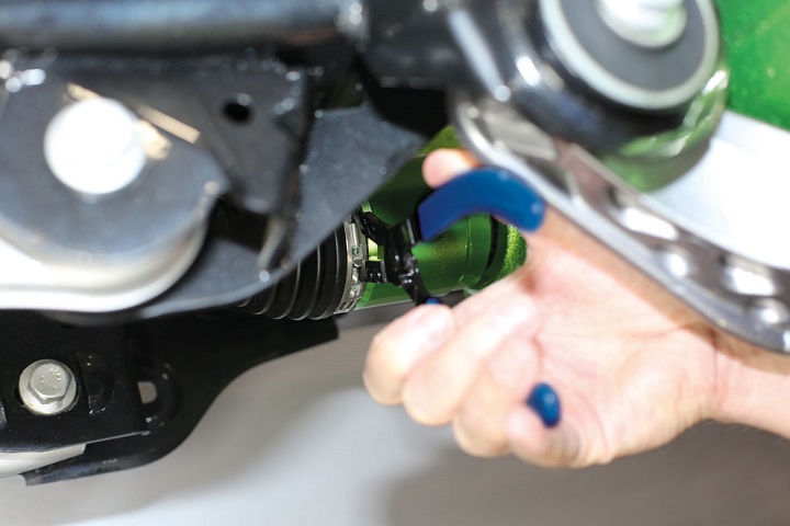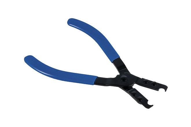 A pair of CV boot clamp pliers designed for tightening the earless type CV boot clamps used on various Volkswagen group vehicles, including Audi and Skoda, together with various Mercedes-Benz and Toyota vehicles. The head has an integral stop so that the pliers can close enough to grip without cutting, making it easy to secure clips correctly, and the handles are vinyl dipped for grip and comfort.