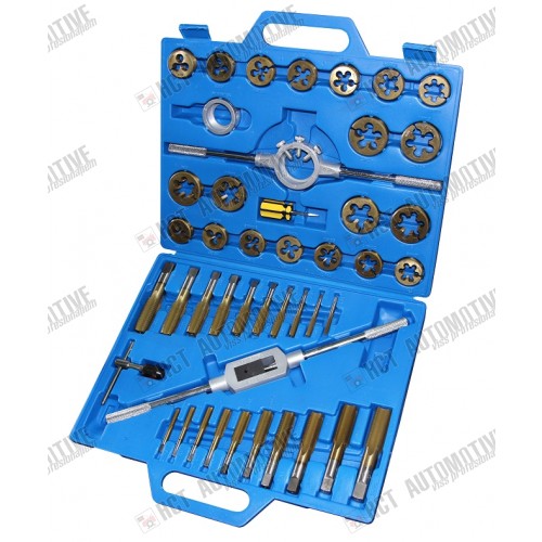 Rinkinyje yra: 20 varžtuvai ir varžtų dėklai: M6 x 1,0 - M6 x 0,75 - M8 x 1,25 - M8 x 1,0 - M10 x 1,25 - M10 x 1,5 - M12 x 1,5 - M12 x 1,75 - M14 x 1,5 - M14 x 2,0 - M16 x 1,5 - M16 x 2,0 - M18 x 1,5 - M18 x 2,5 - M20 x 1,5 - M20 x 2 , 5 - M22 x 1,5 - M22 x 2,5 - M24 x 1,5 - M24 x 3,0 mm su metriniu standartiniu ir smulkiuoju viniu.