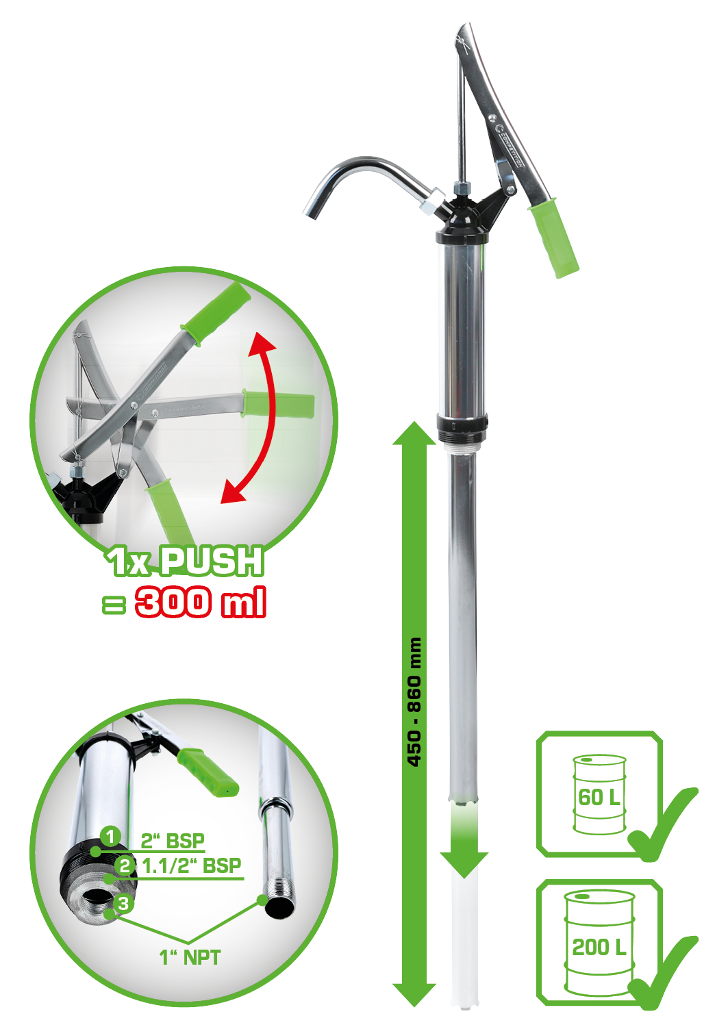 - Ar 2 pakāpju pievienojuma vītni piemērots 50 - 200 litru mucām