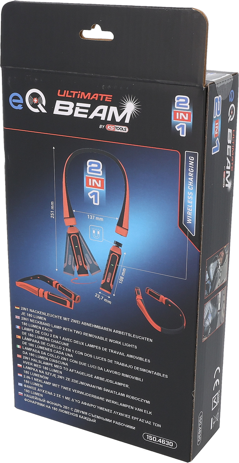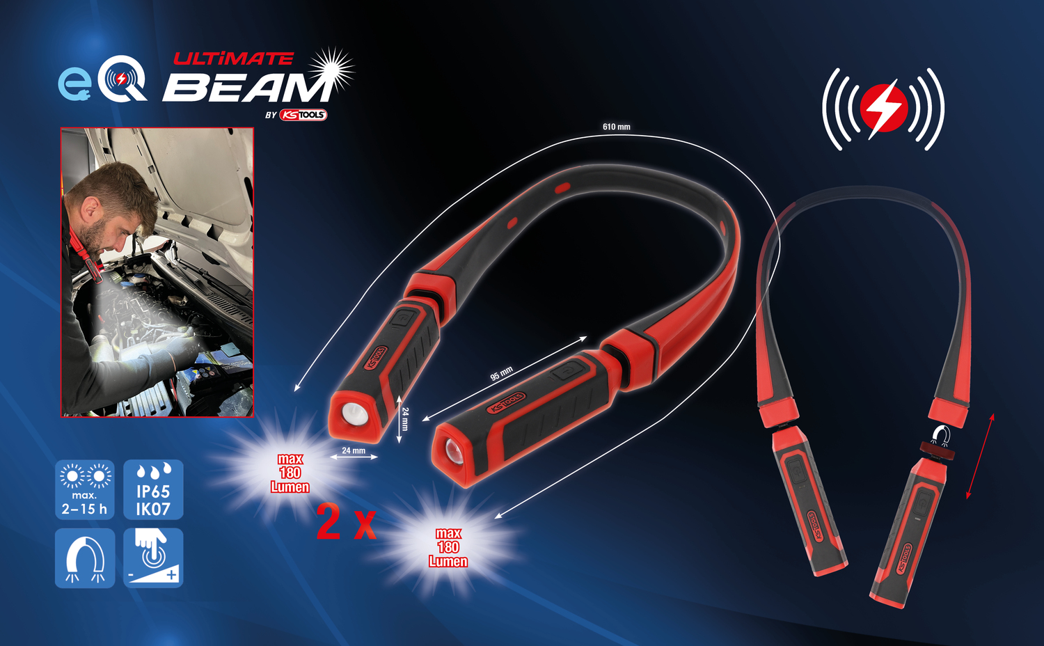 eQi UltimateBEAM divi vienā uz pleciem liekams lukturis ar divām noņemamām darba lampām, 180 lūmeni