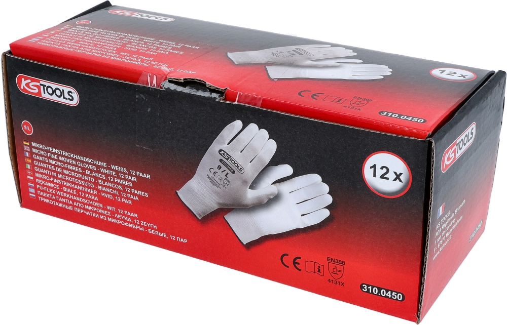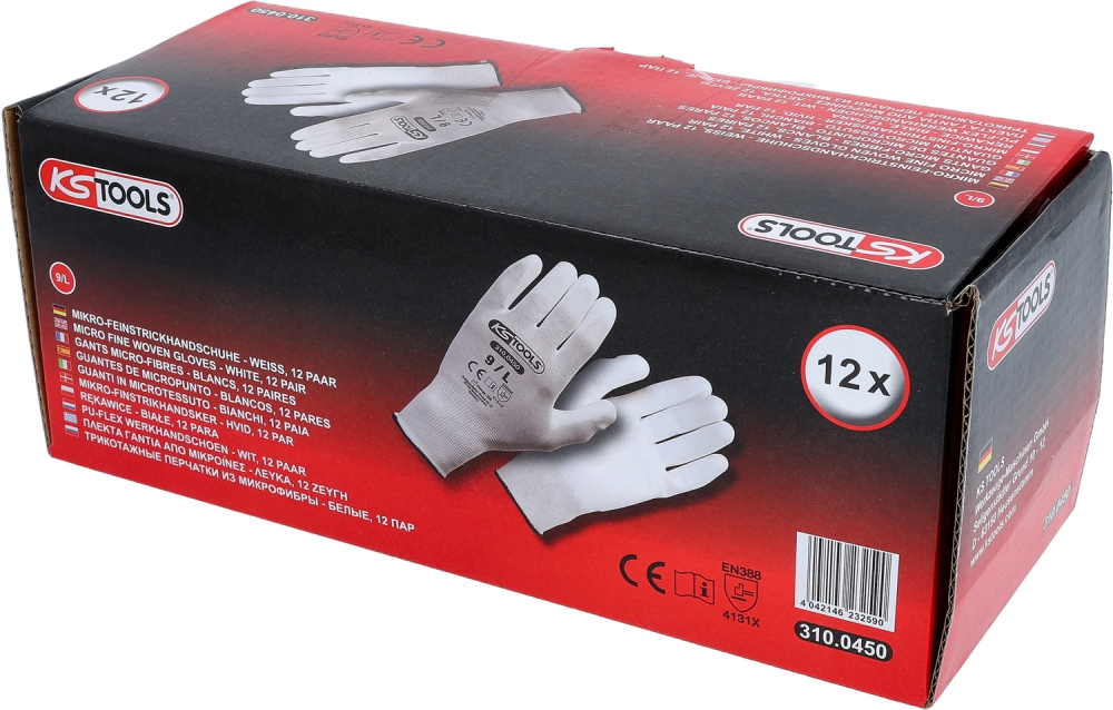 Mikro smalka adījuma cimdi, balti, 9, 12 pāri