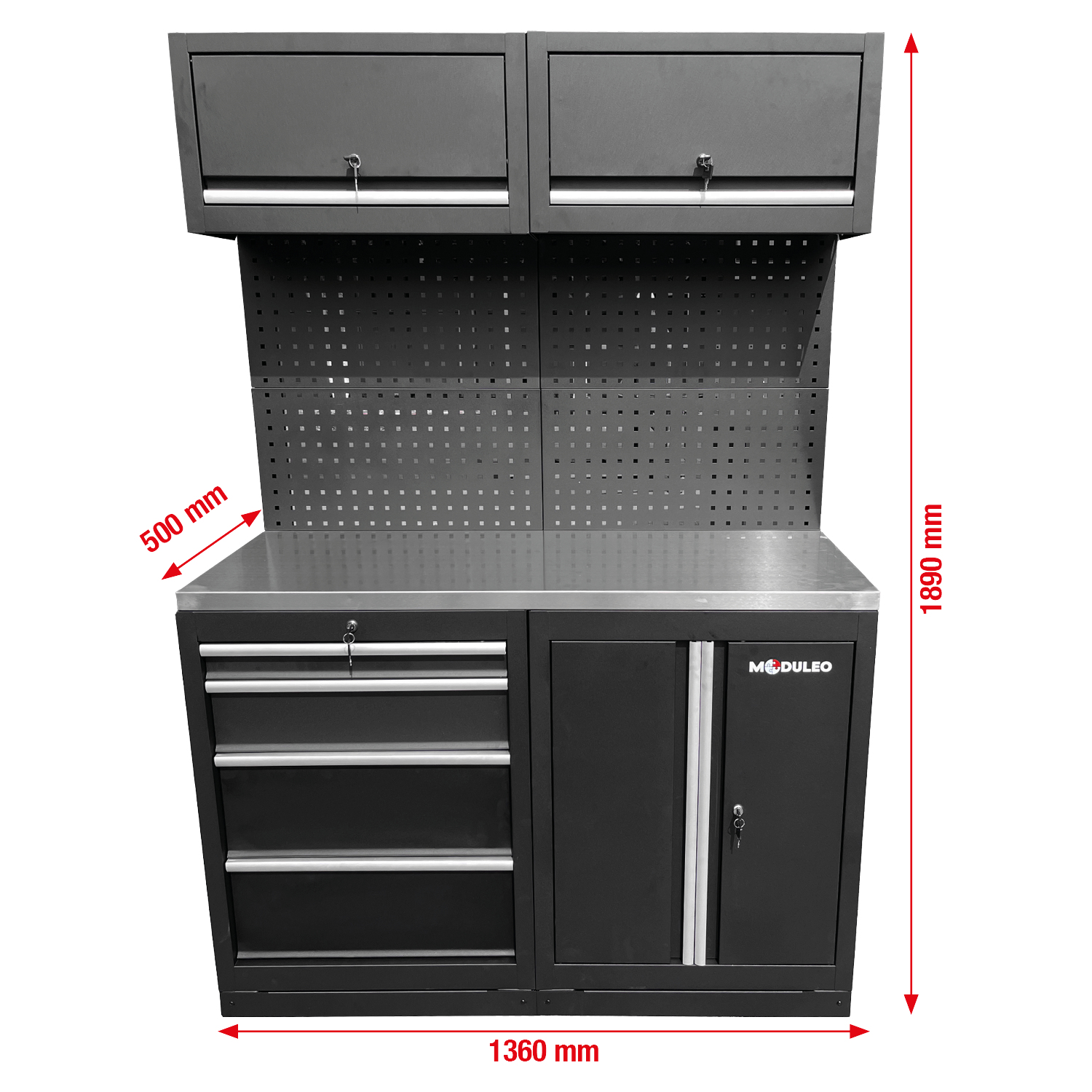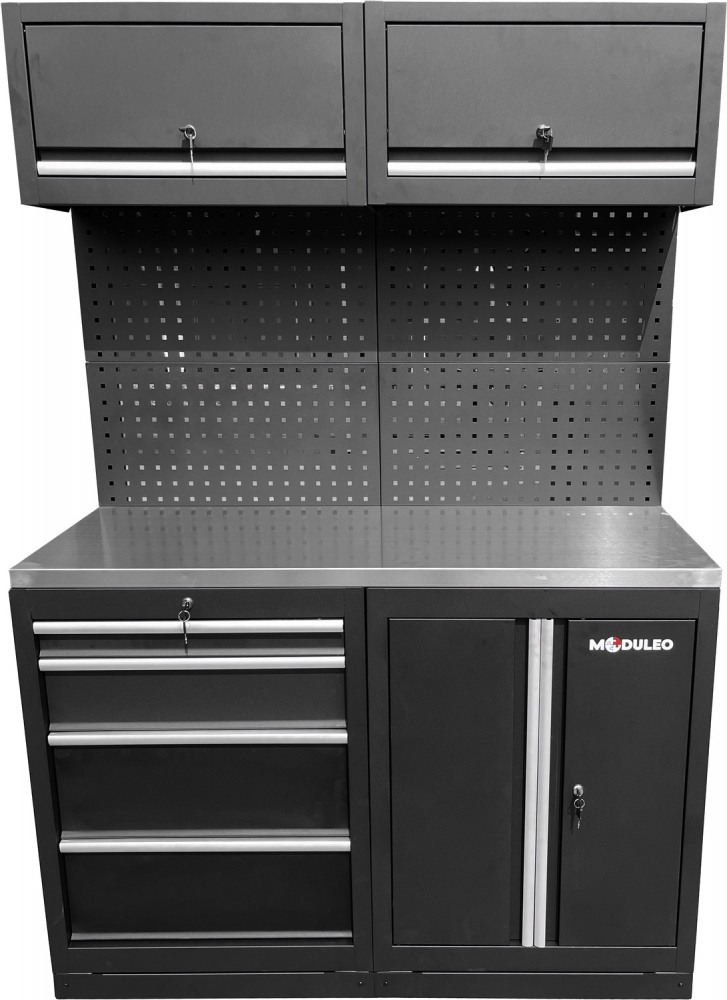 Darbnīcas skapju sistēmas papildinājuma modulis, nerūsošā tērauda darba virsma