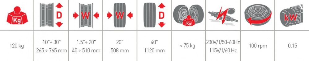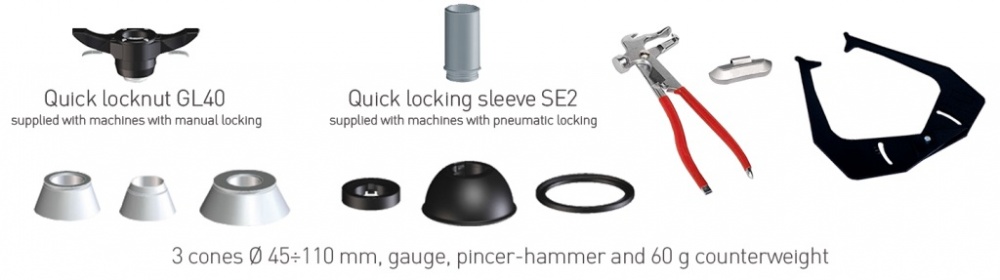 Digitāla riteņu balansēšanas iekārta ar skārienjutīgu video monitoru, kuras ir aprīkota ar automātisku mērierīci pareizai attāluma un riteņa diametra noteikšanai, kā arī lāzera pozicionieri precīzai un ērtākai līmējamo atsvariņu pielikšanai, kā arī pneimatisko riteņa piespiedēju!