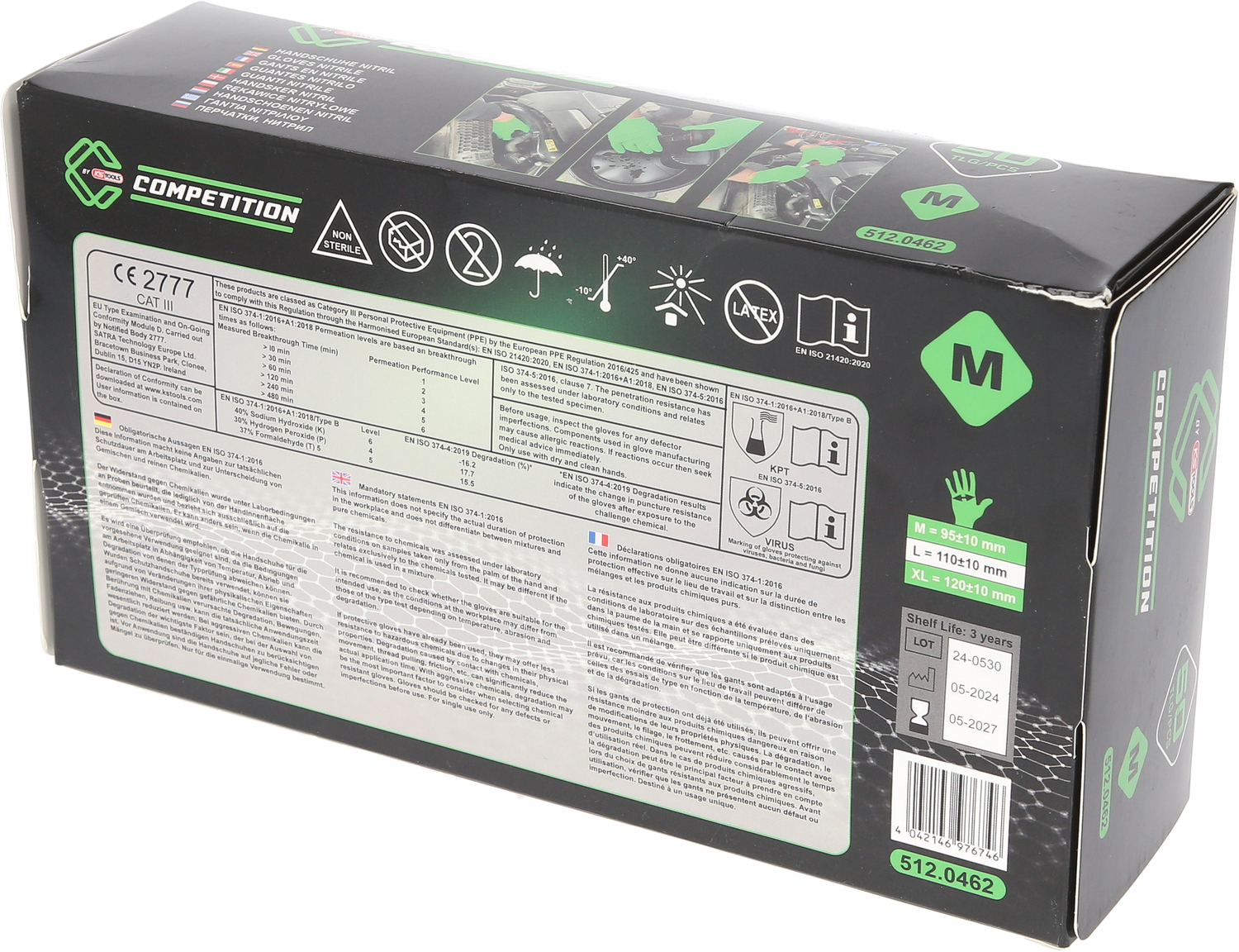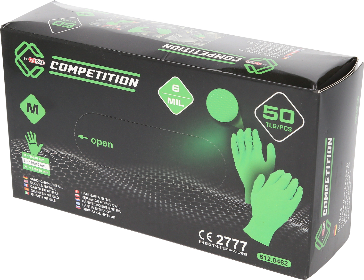 Перчатки COMPETITION, нитрил, M, в коробке 10x50 шт., зеленые