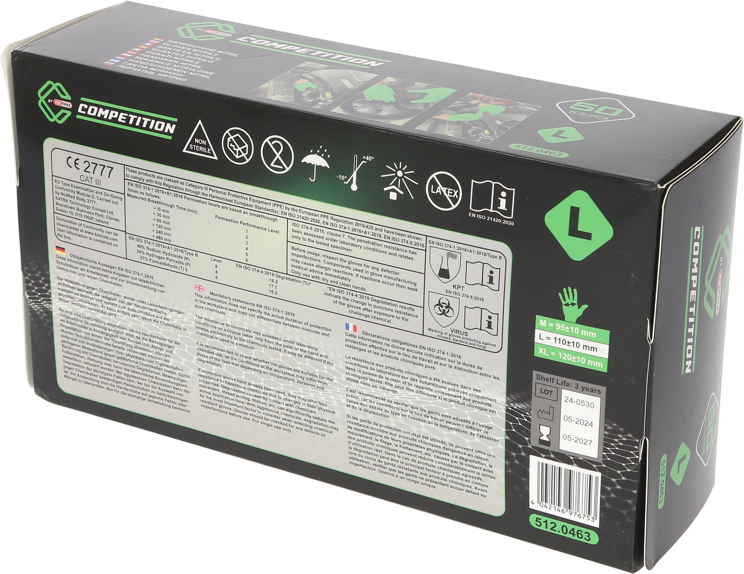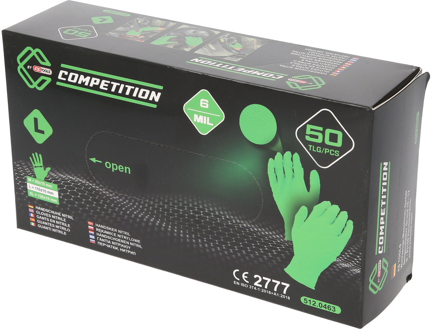 Перчатки COMPETITION, нитрил, L, в коробке 10x50 шт., зеленые