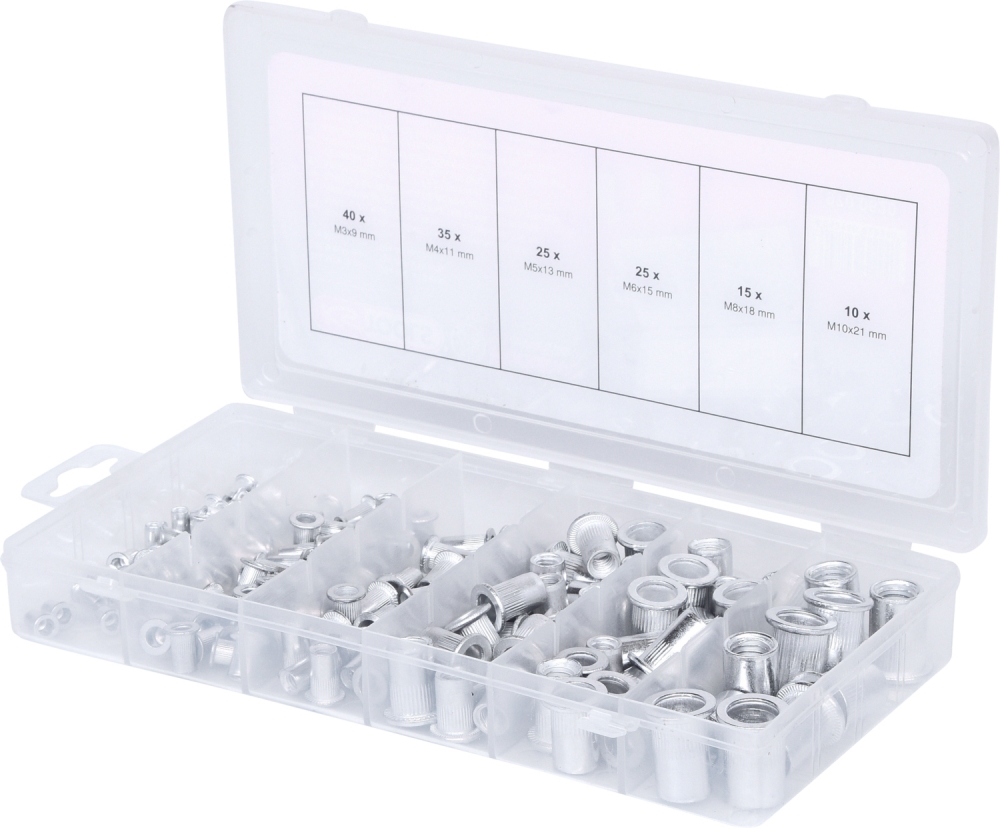 Ассортимент резьбовых заклепок, алюминий, M3x9mm-M10x21 мм, 150 шт