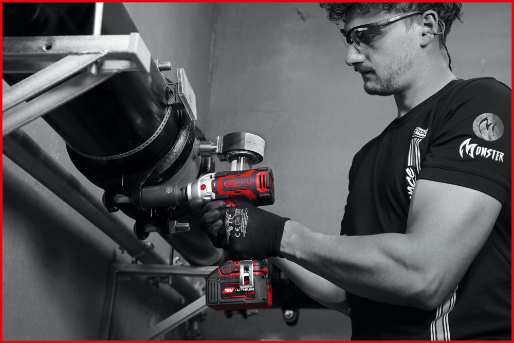 Бесщеточный аккумуляторный ударный винтоверт eMONSTER 1/2“ впечатляет своей компактной конструкцией и мощным крутящим моментом в 690 Нм. Эти качества делают его незаменимым помощником в самых разных условиях работы. Ударный винтоверт имеет функцию трехступенчатого регулирования крутящего момента, чтобы приспособить его к индивидуальным требованиям заказчика. Также имеется два разных механизма выпуска. Классический ход против часовой стрелки и функция остановки вращения. Благодаря этому можно легко откручивать винтовые соединения. В это время устройство само распознает, откручено ли соединение, после чего автоматически отключается. Это позволяет избежать непреднамеренного запуска после откручивания соединения. Таким образом повышается уровень безопасности рабочего места.