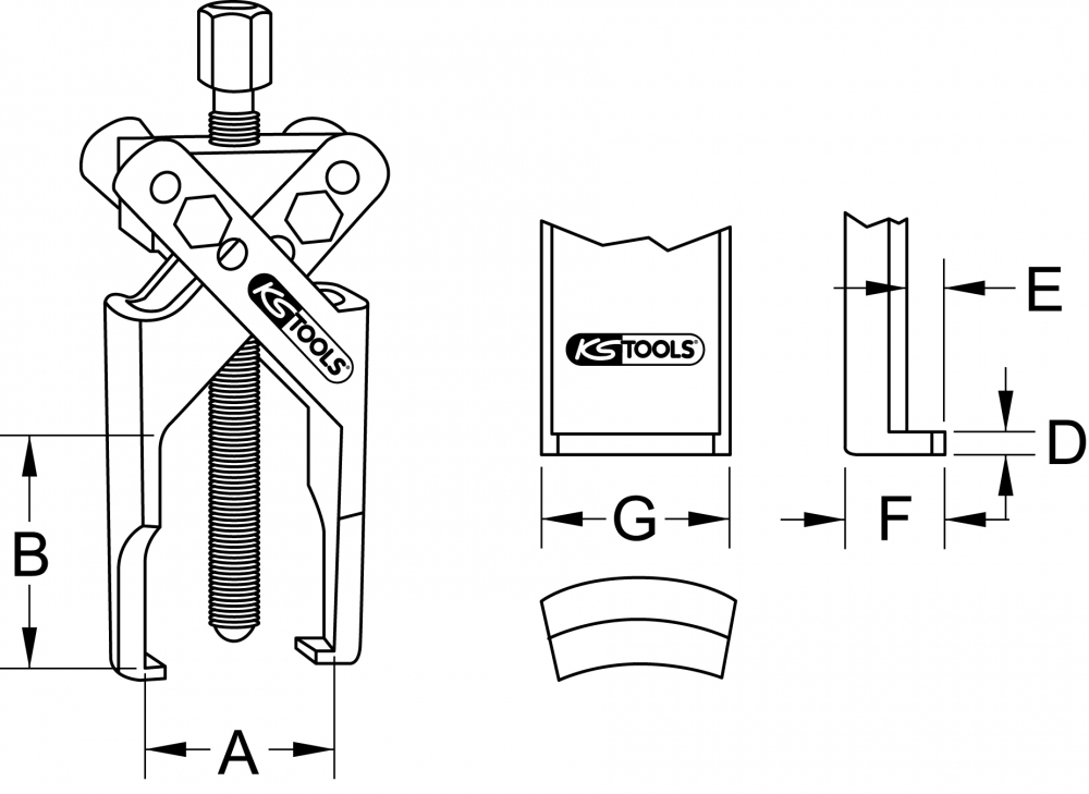 Универсальный съемник 2-плечий с узкими крюками, 6-100 мм