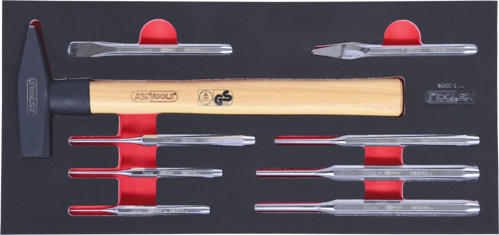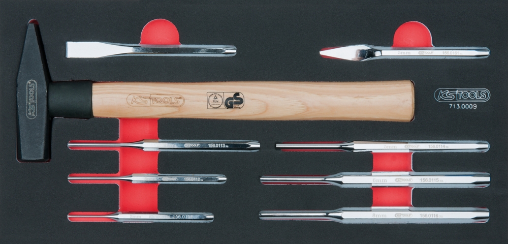 Комплект зубил и молотков SCS, 9 шт, во вкладке на 1/3 инструментального ящика