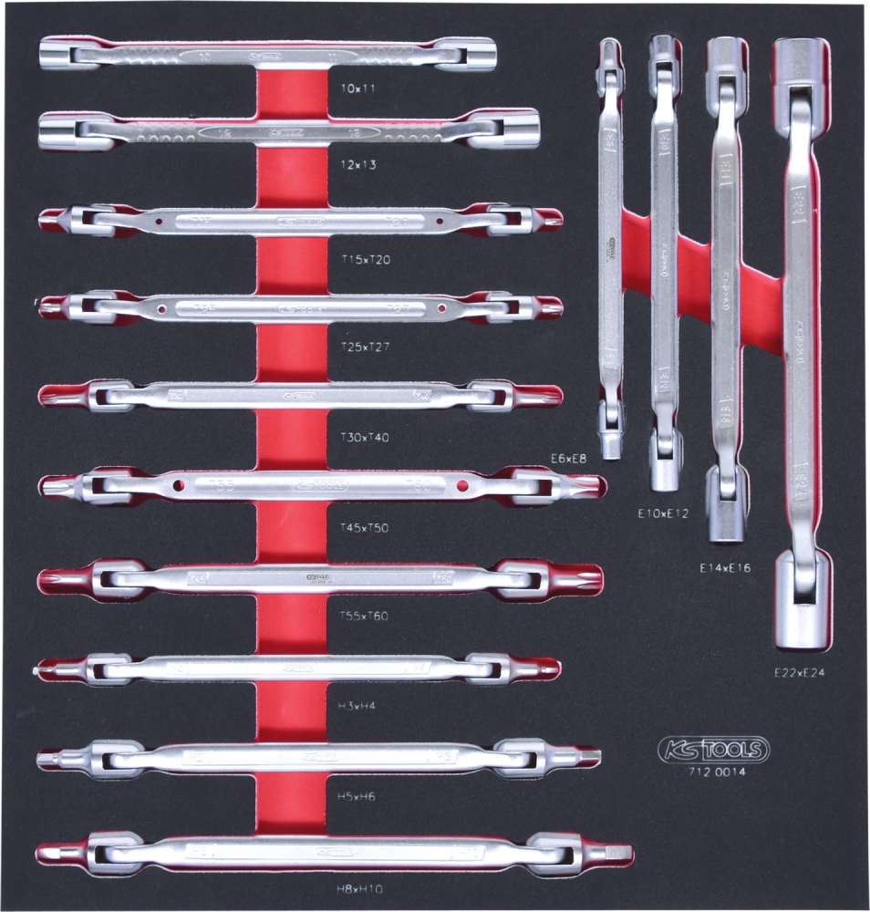 Комплект двусторонних шарнирных ключей SCS, 14 шт, во вкладке на 2/3 инструментального ящика