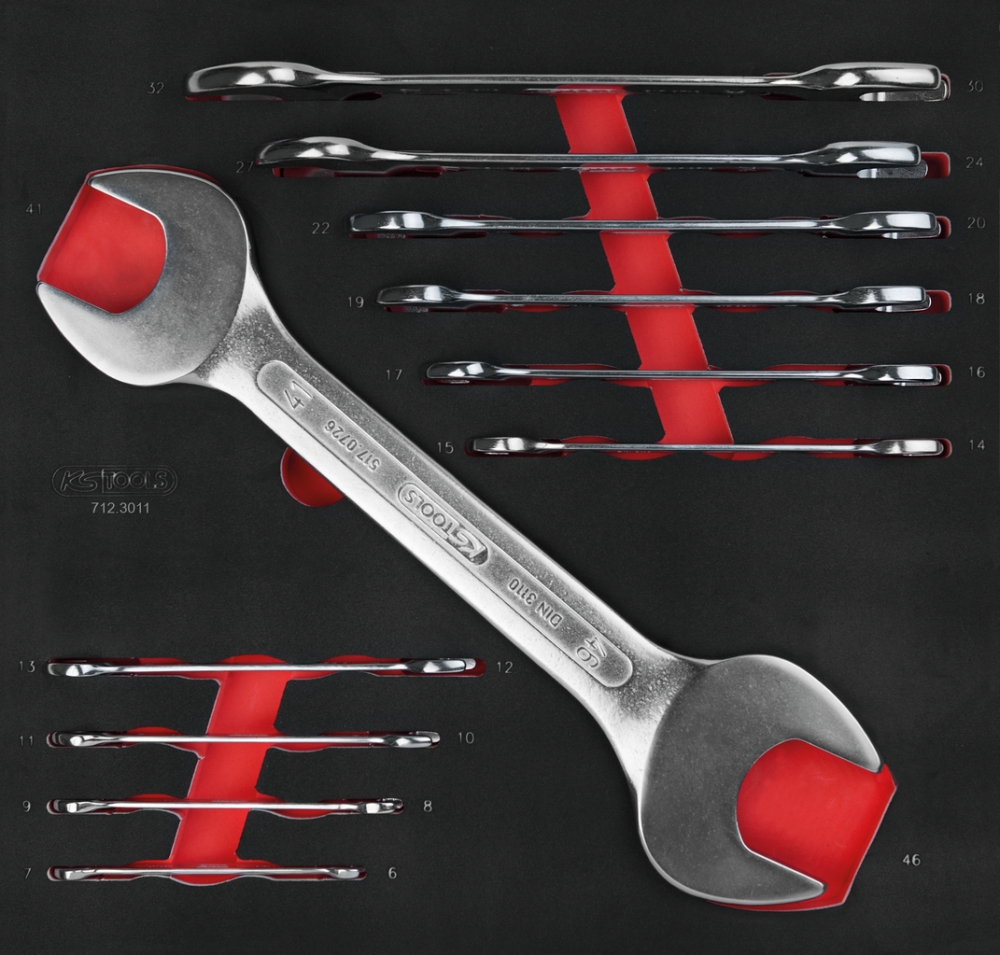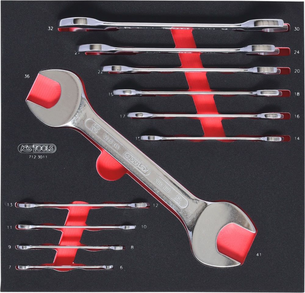 Комплект двусторонних рожковых ключей SCS, 11 шт, 6-41 мм, во вкладке на 2/3 инструментального ящика
