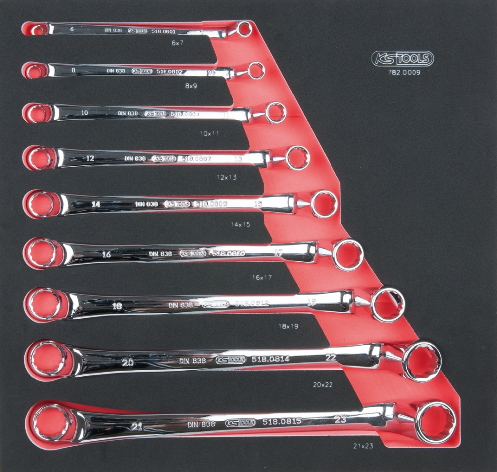 Комплект двусторонних накидных ключей SCS CHROMEplus, 9 шт, во вкладке на 2/3 инструментального ящика