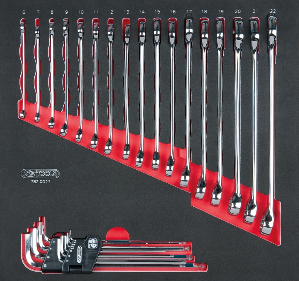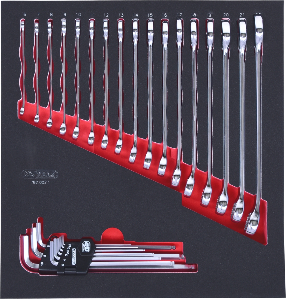 Комплект комбинированных ключей SCS CHROMEplus, 27 шт, во вкладке на 2/3 инструментального ящика