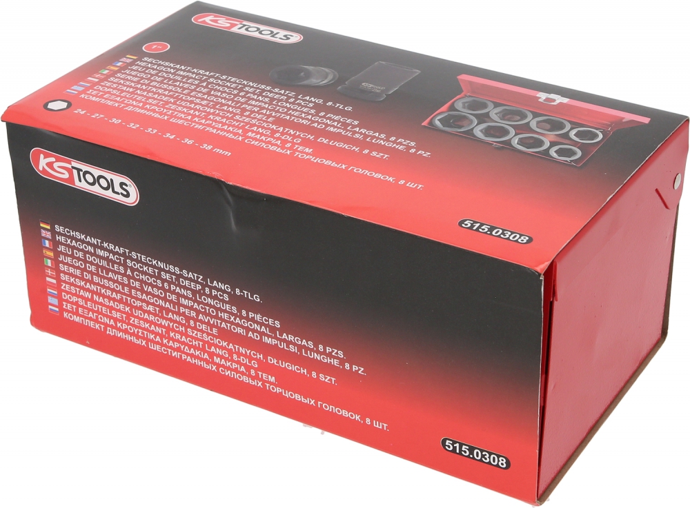 Комплект шестигранных силовых торцовых головок 1", длинных, 8 шт