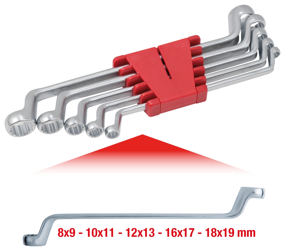 Комплект двусторонних накидных ключей, изогнутых, 5 шт, 8-19 мм
