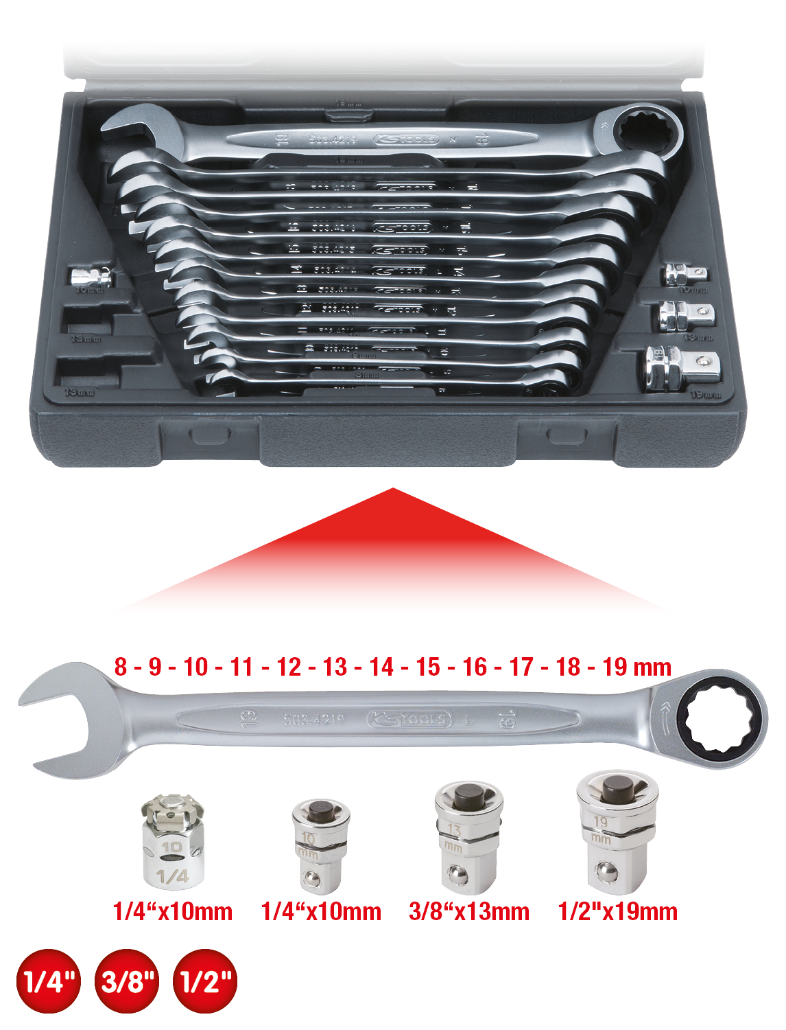 Комплект комбинированных ключей с трещоткой GEARplus, 16 шт
