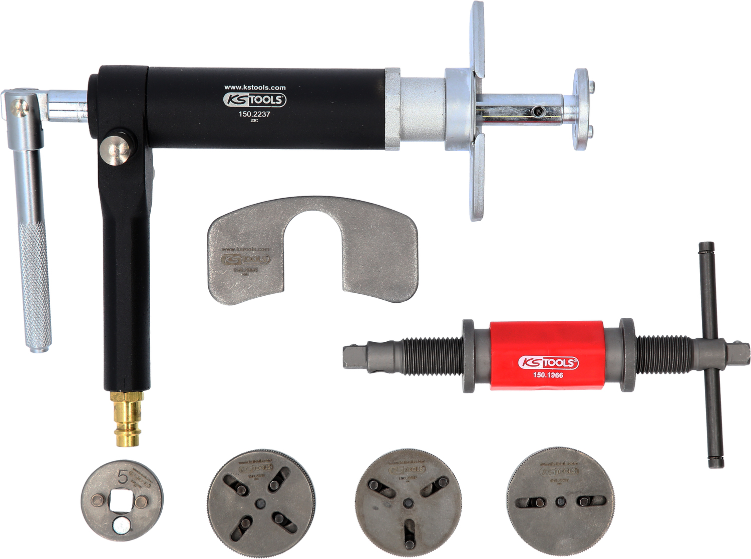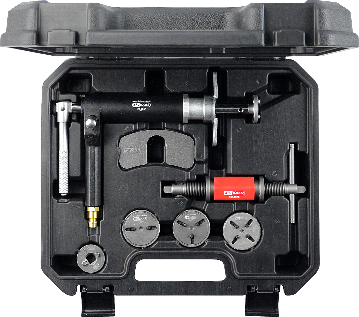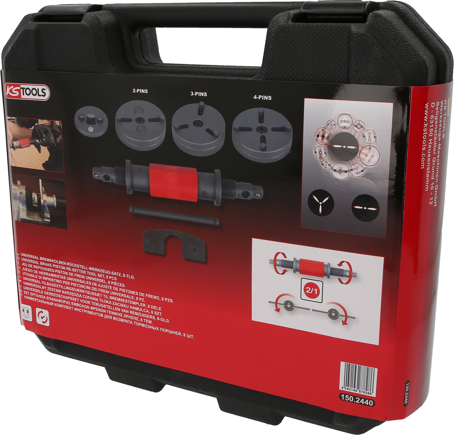 - С уникальным регулируемым 2-, 3- и 4-пиновым универсальным переходником для тормозных поршней и переходником на 3/8" с магнитом