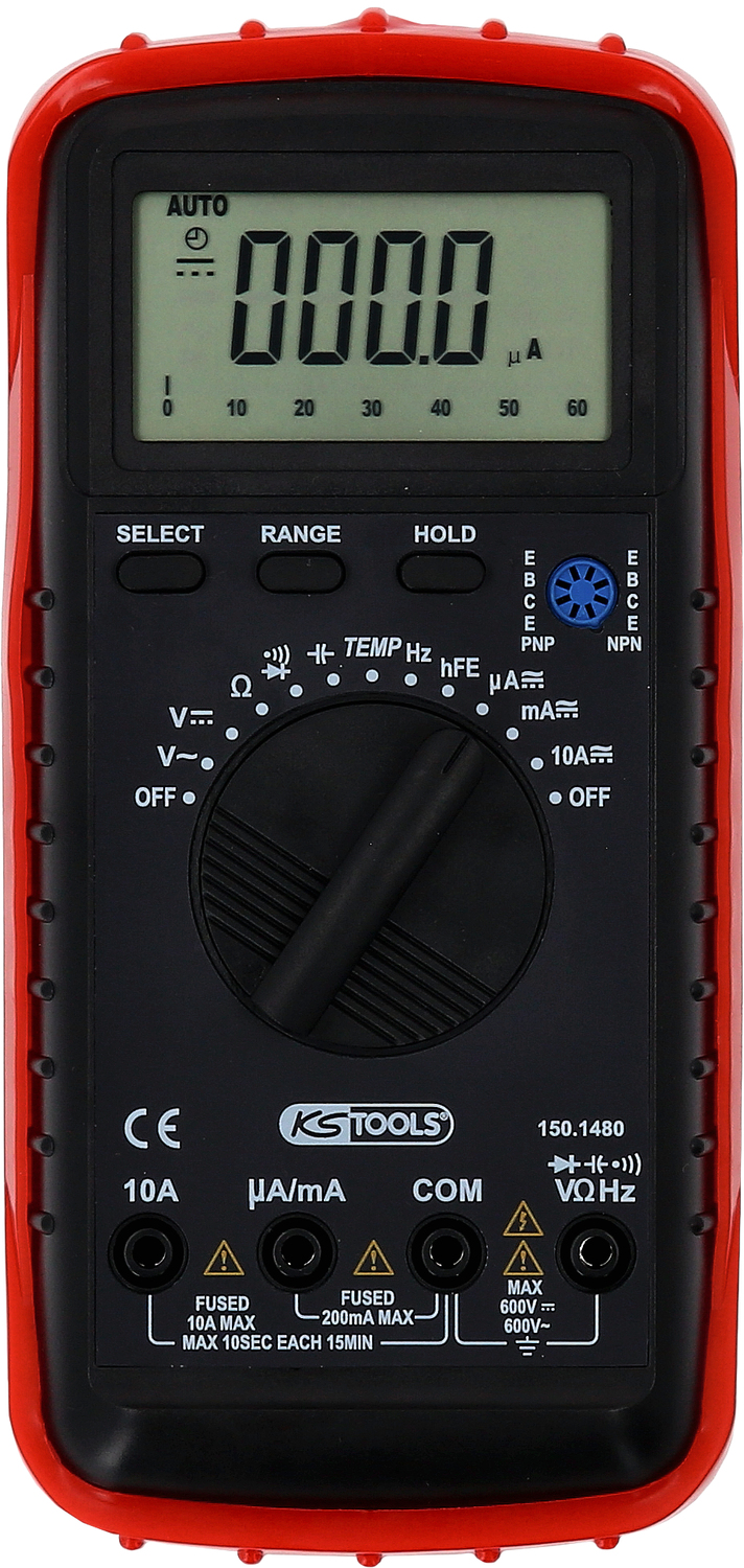 - неправильное подключение исключено благодаря защитному механизму при измерении в В, мкA / мA / A