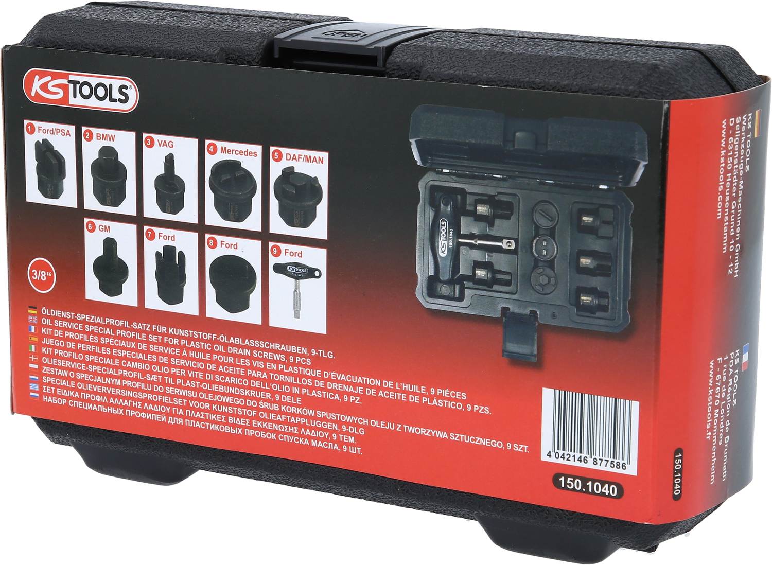 3/8" Набор специальных профилей для пластиковых пробок спуска масла, 9 шт