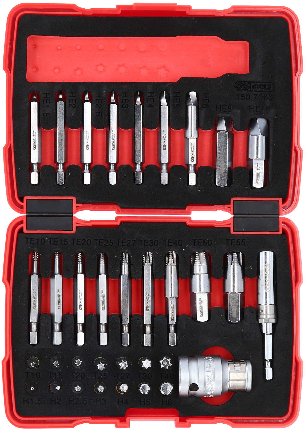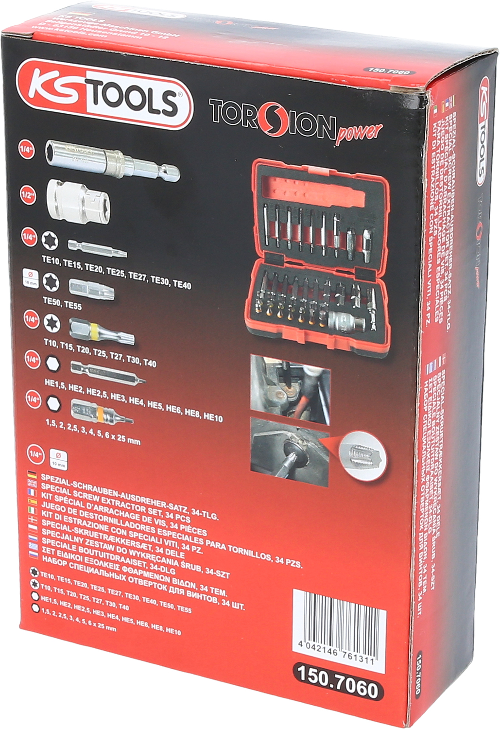 Комплект сверл 1/4" + 10 мм для болтов с внутренним шестигранником и шлицев типа Torx, 34 шт