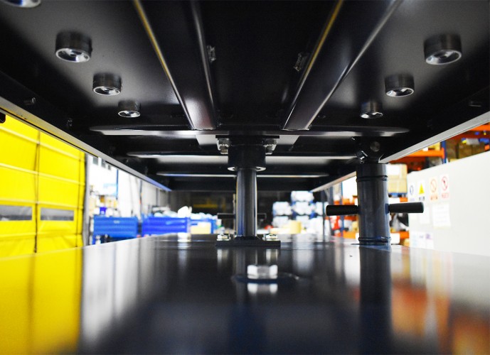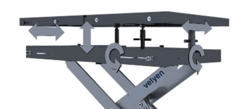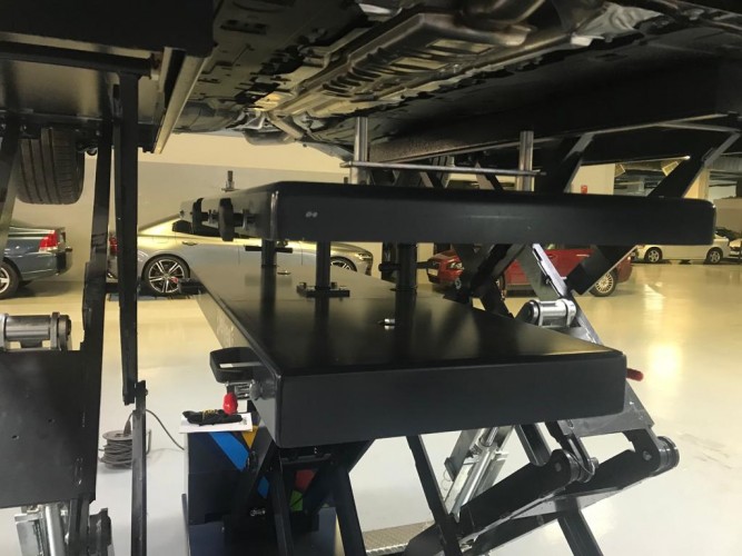Platform with a grid hole pattern, lifting table for special tools. 10 mm. every 100 mm. (Custom manufacturing depending on OEM) 2. Longitudinal and transverse inclination + -30mm, mounting plate is separated and slidable 3. 1200 Kgs or 1400 Kgs as two options. 4. Made 100% by Spain, high quality and reliability